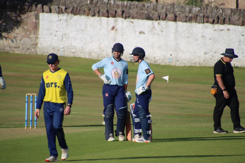 Also on Saturday the 2s were at Newfield to take on Edinburgh Accies. Bowling first it took until the 17th over to make a breakthrough thanks to Shreyas Tekale with 62 on the board. Another good partnership for the home side was broken by Hamish Foley who claimed the 3rd wicket next ball to make it 119 for 3. More consolidation for the home side followed until Hector Murray got the 4th wicket with the score on 191. Skipper Charles Stronach then chipped in with 2 quick wickets to make it 205 for 6 but the Accies lower order accelerated the scoring. Despite wickets for Max D’Ulisse (2) and Aadi Khadse and a runout the home side were bowled out for a formidable 288 in the final over. All of the Arrows top and middle order got starts but only Charlie Kentish was able to get past 50. With the required rate getting away from the visitors Kentish eventually fell for 68 from just 59 balls leaving the lower order with too much to do. The 2s finished on 233 for 9 to lose by 55 runs.